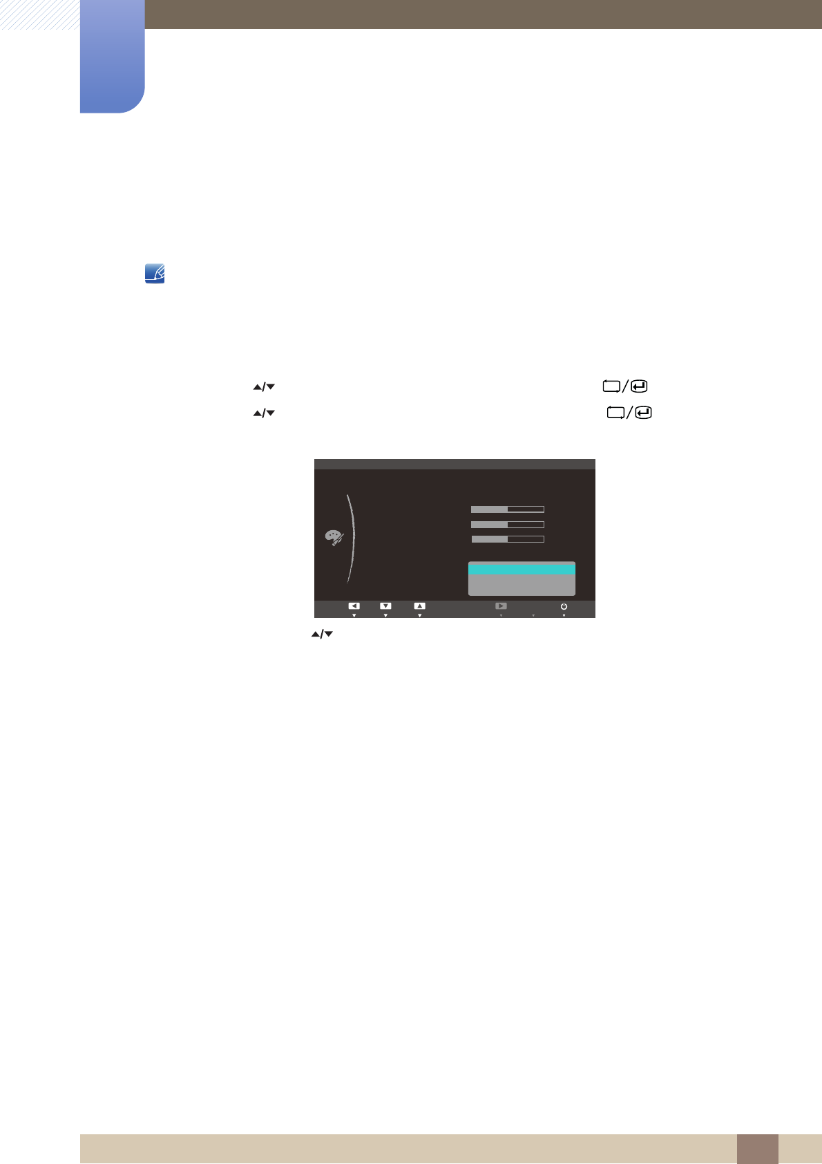 2 Drücken Sie [ ], um zu FARBE zu navigieren, und drücken Sie dann [ ].