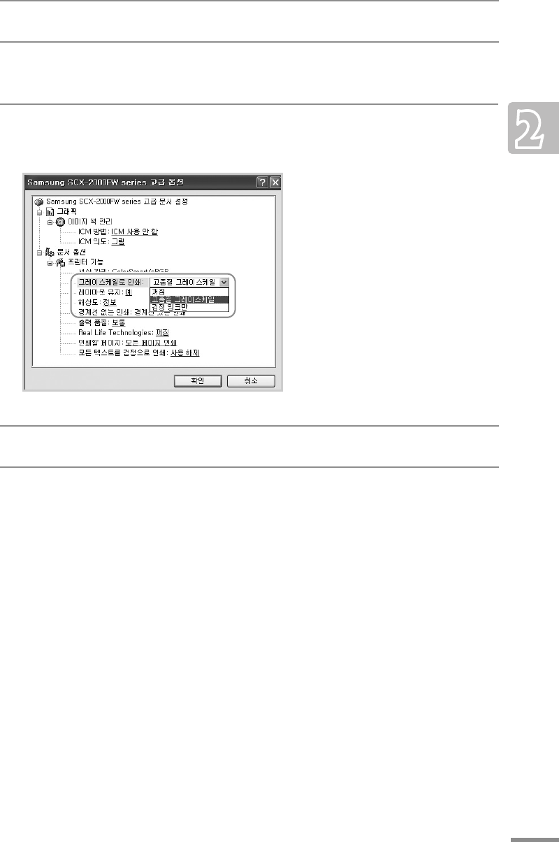 < 고급 > 옵션 중 문서 옵션 영역의 ' 그레이스케일로 인쇄 ' 항목을